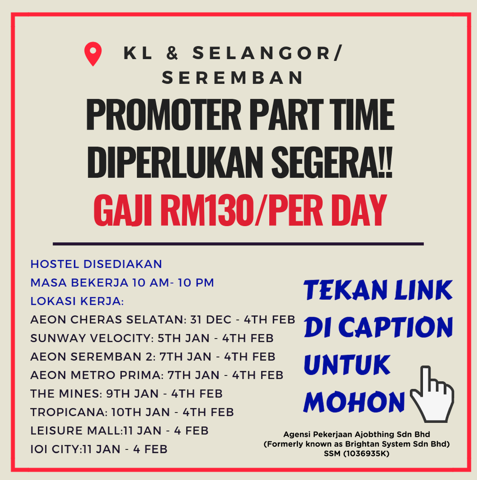 Maukerja On Twitter Promoter Part Time Diperlukan Segera Link Kerja Https T Co Og15yiy7rj Gaji Rm130 Sehari Kalau Bosan Sangat Duduk Rumah Cuti Sem Ni Jom Apply Kerja Ni Gaji Masyuk Wehh Kalau Jauh